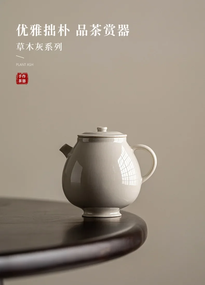 120ml Chinese Handmade Grass Wood Gray Ceramic Teapot Creative Pot Tea Brewing Kettle Kung Fu Tea Tea Services Decoration Gifts